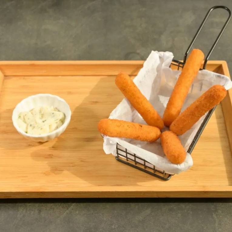 (587 سعرة حرارية)ست قطع من أصابع جبنة الموزاريلا المقلية مغطاة بالبيض وفتات الخبز المحمص